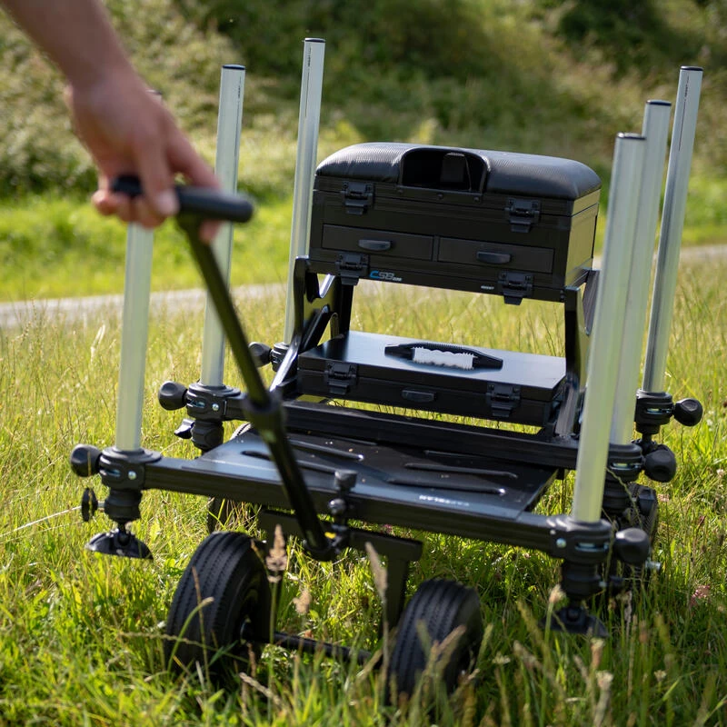 Pack chariot de traction développé par notre équipe de conception pour pouvoir tracter sa station de pêche Caperlan.Pack chariot et roues arrière , très stable pour tracter facilement sa station de pêche jusqu’à son poste de pêche.